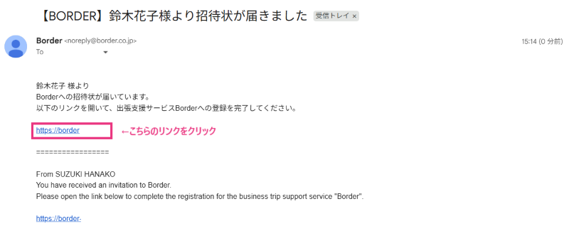 管理者がBORDERをとして、ユーザーへ招待メールを送信します。