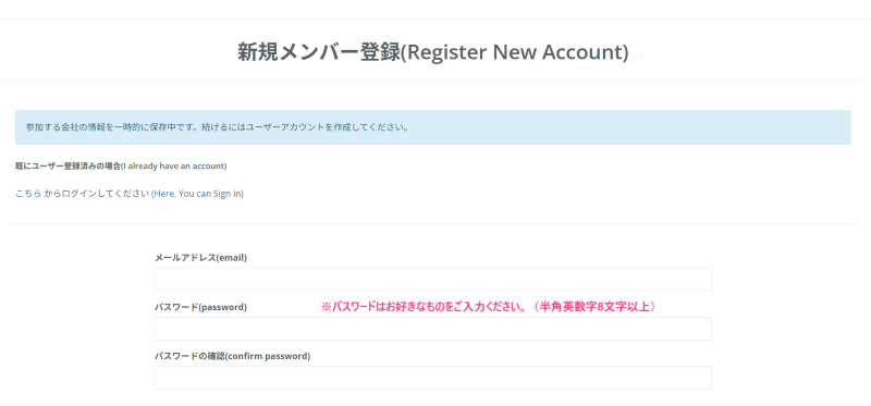 ②新規メンバーは、受信した招待状から登録画面にアクセスし、必要情報を入力してユーザー登録をする