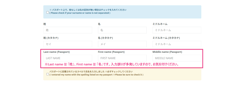 氏名(特に英字)はパスポートに記載されている内容と完全に一致させる必要があります。